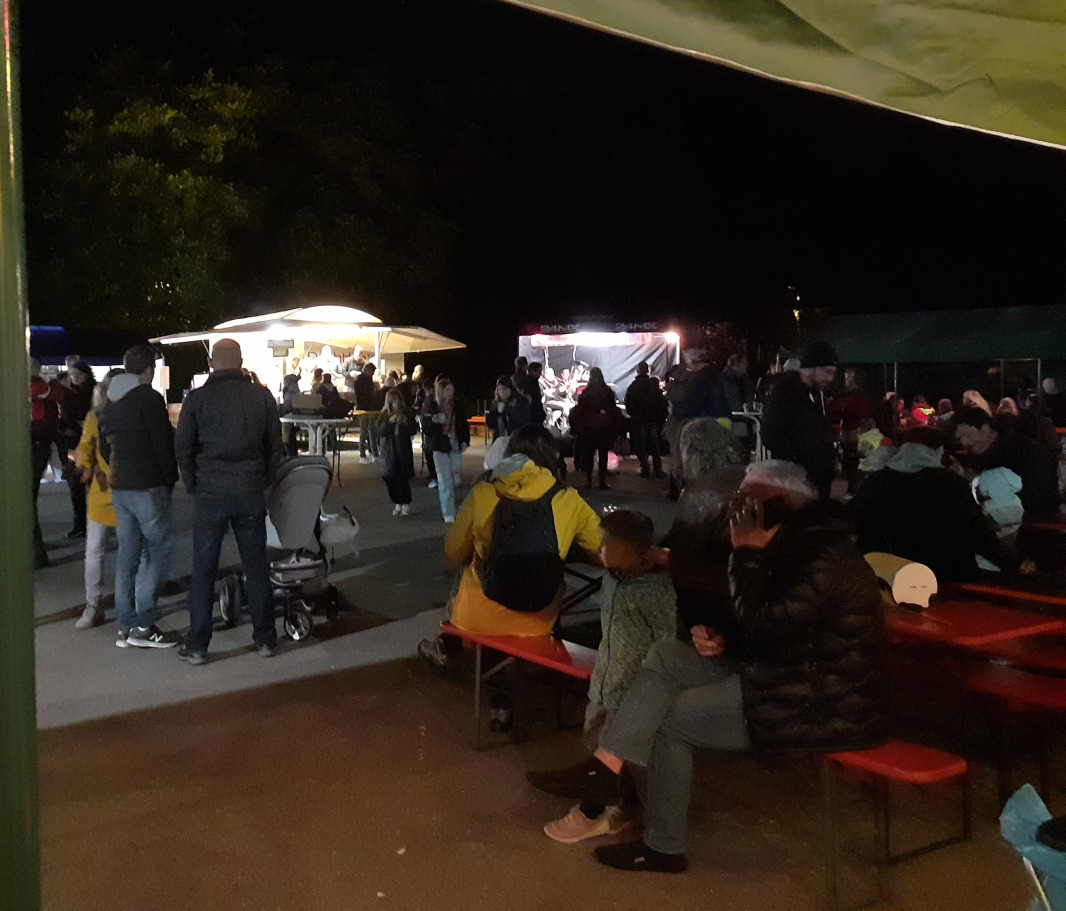 Trotz kühlem Wetter kamen zahlreiche Besucher auf den Schulhof der Reisachschule. Am Lampionumzug am Samstagabend nahmen ca. 40 Kinder teil.