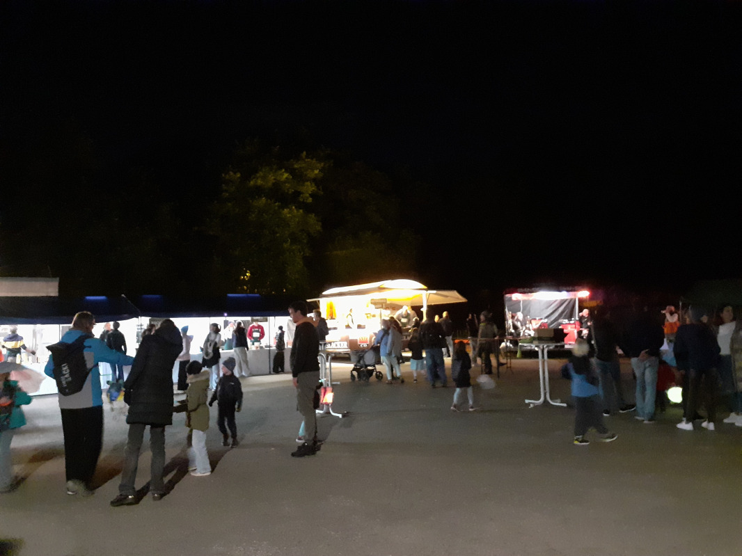 Trotz kühlem Wetter kamen zahlreiche Besucher auf den Schulhof der Reisachschule. Am Lampionumzug am Samstagabend nahmen ca. 40 Kinder teil.